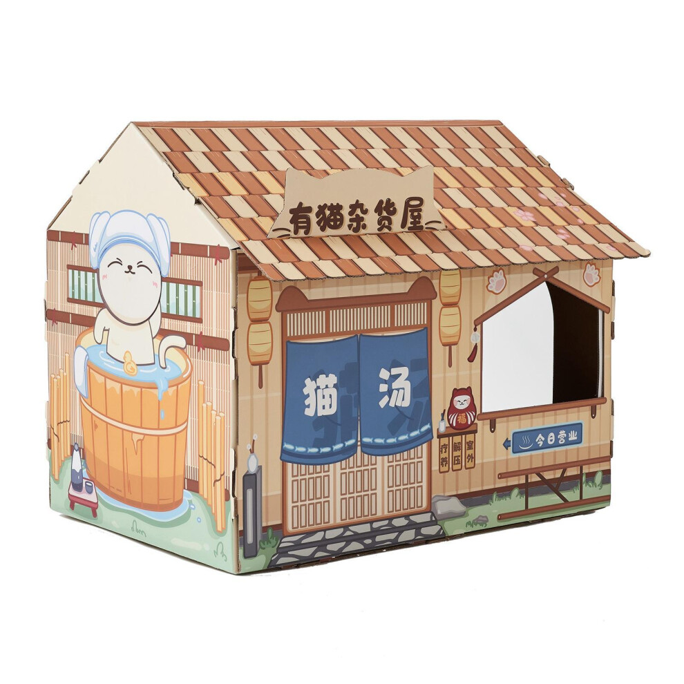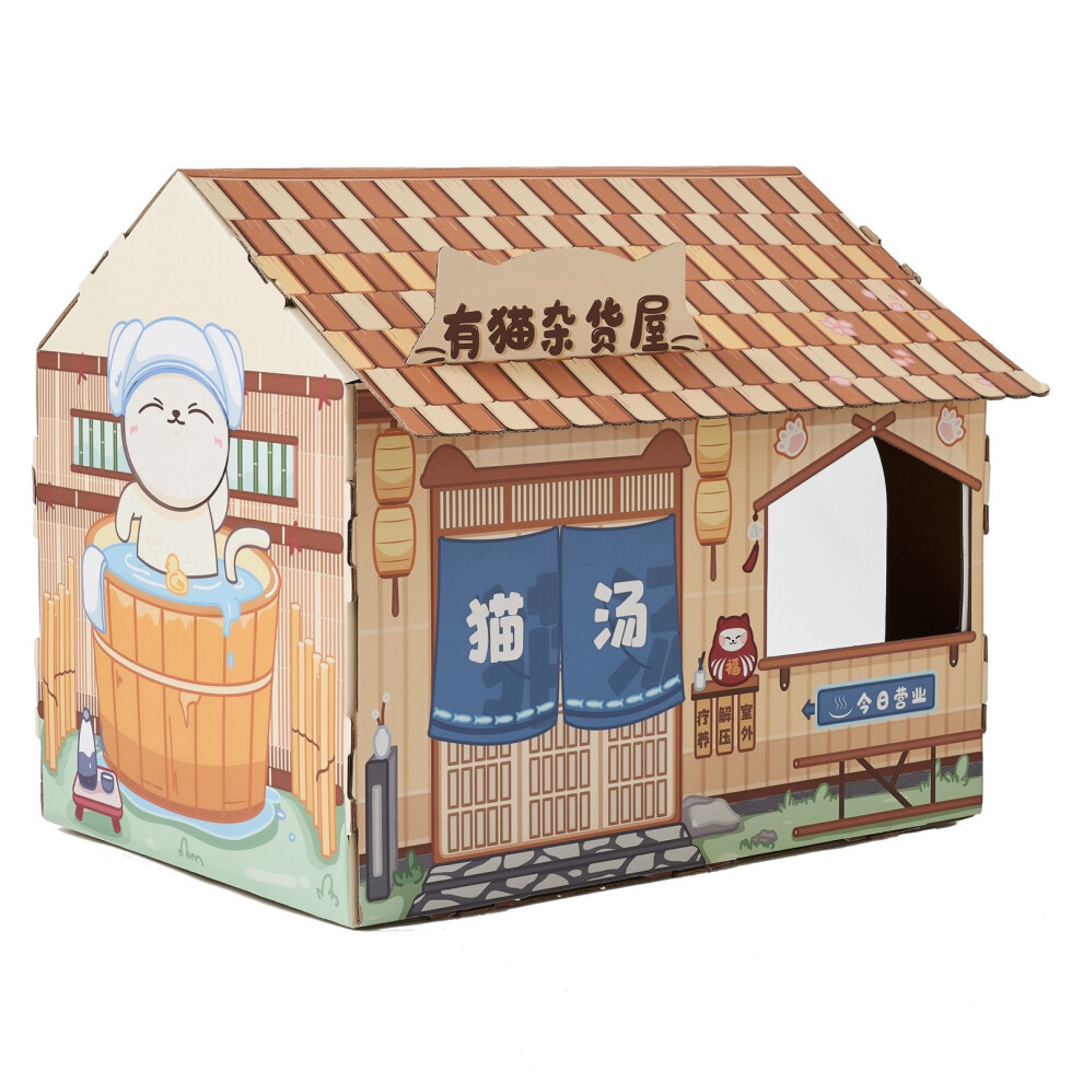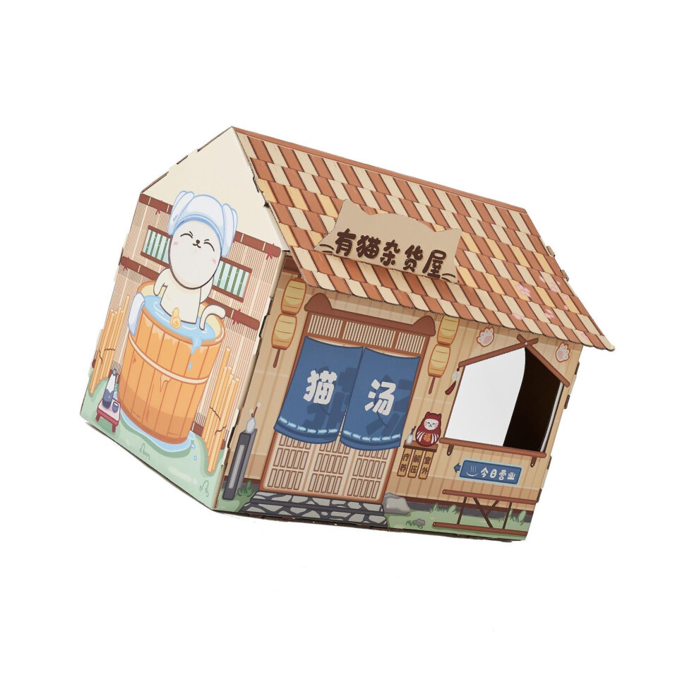 Cardboard Cat House Safe Healthy Wear Resistant Portable Cat Play House with Catnip for Cats Hot Spring House
