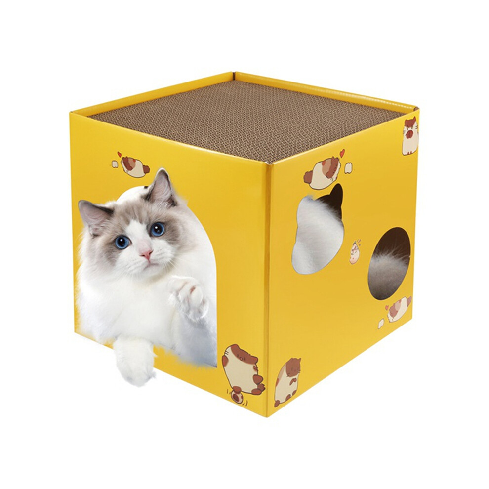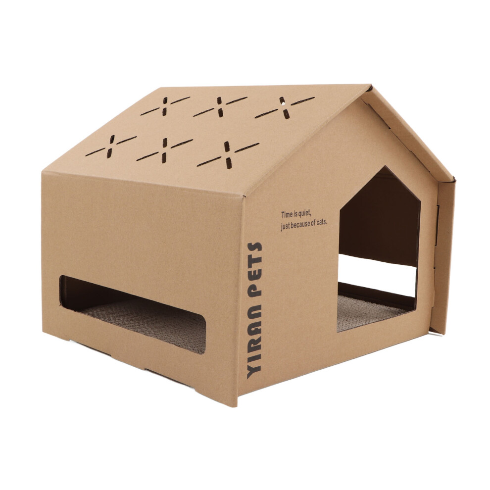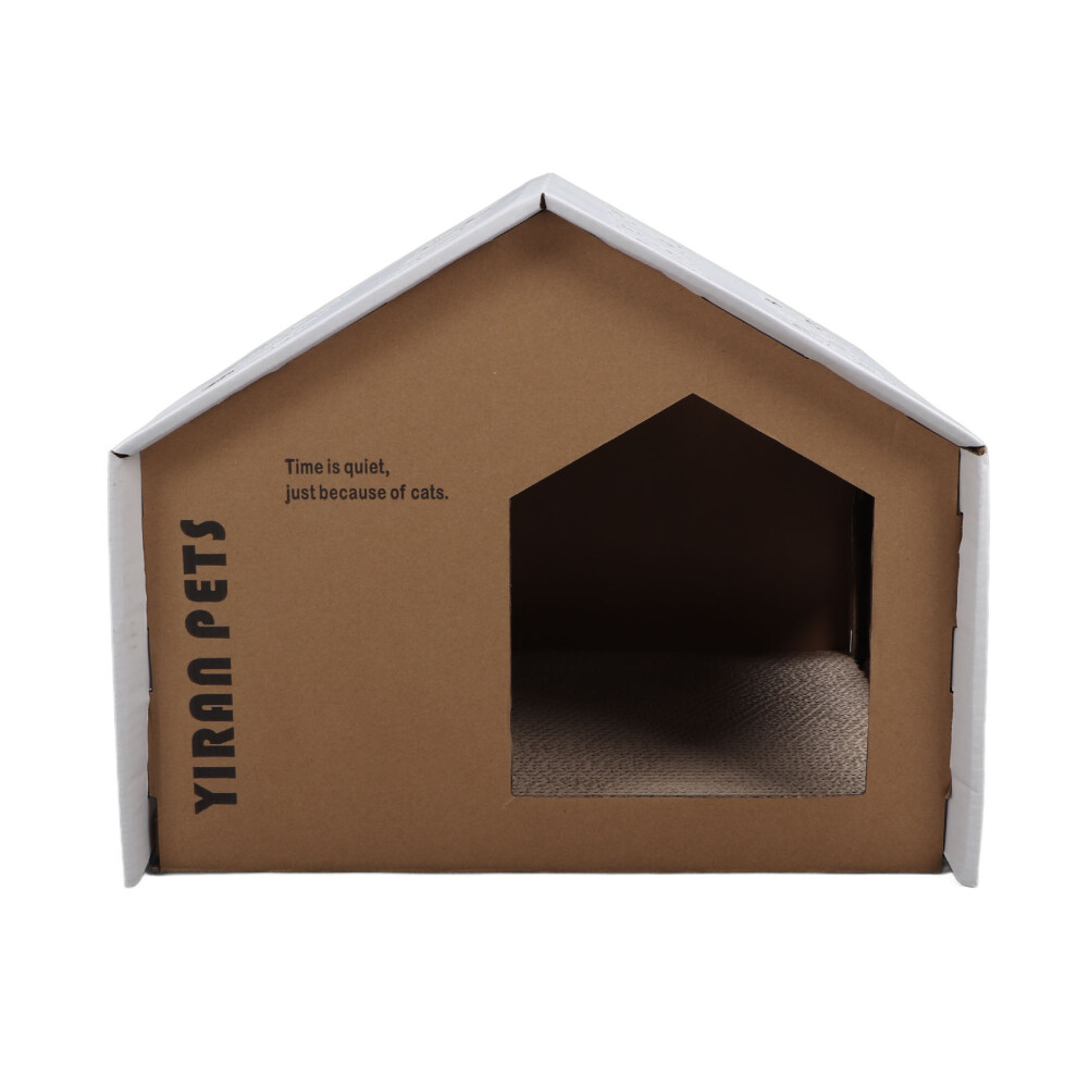 Large Cardboard Cat House with Scratching Card, Claw Grinding, Cozy Cave Design