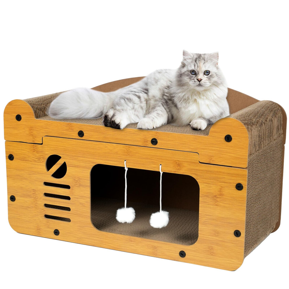 DoubleSided Delight ExtraLarge Cardboard Cat House Scratcher Bed for Indoor Cats, with Stable and Detachable Corrugated Board Scratcher Box