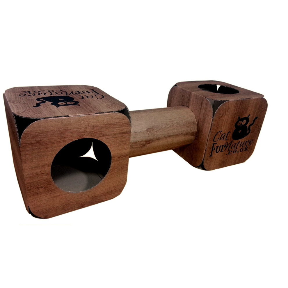 Cardboard Cat House & Tunnel Wood Effect - Bed