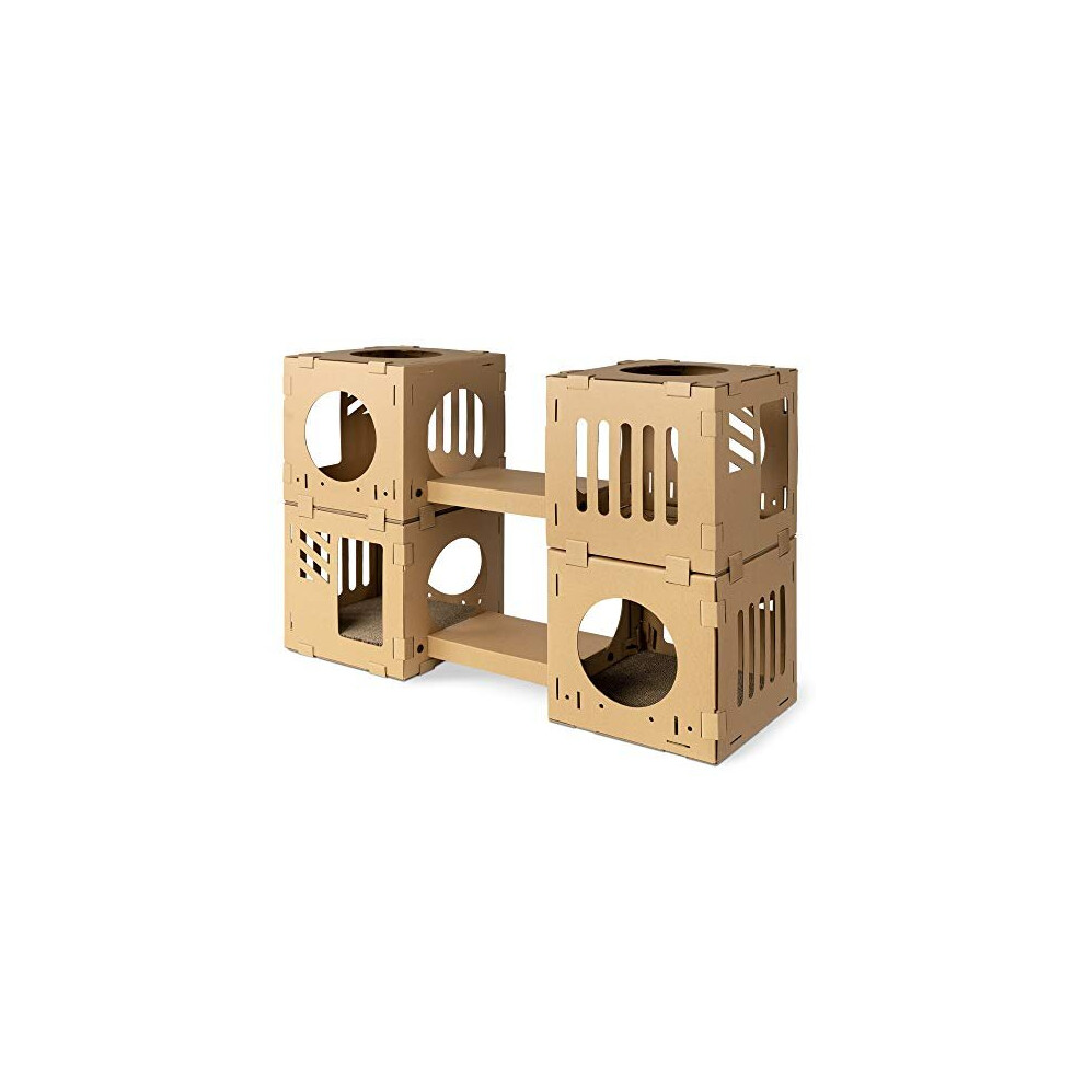 Navaris Modular Cardboard Cat House - DIY Corrugated Cardboard Configurable Play Tower Condo for Small Cats, Kittens, Rabbits - 4 Cubes with 2 Br