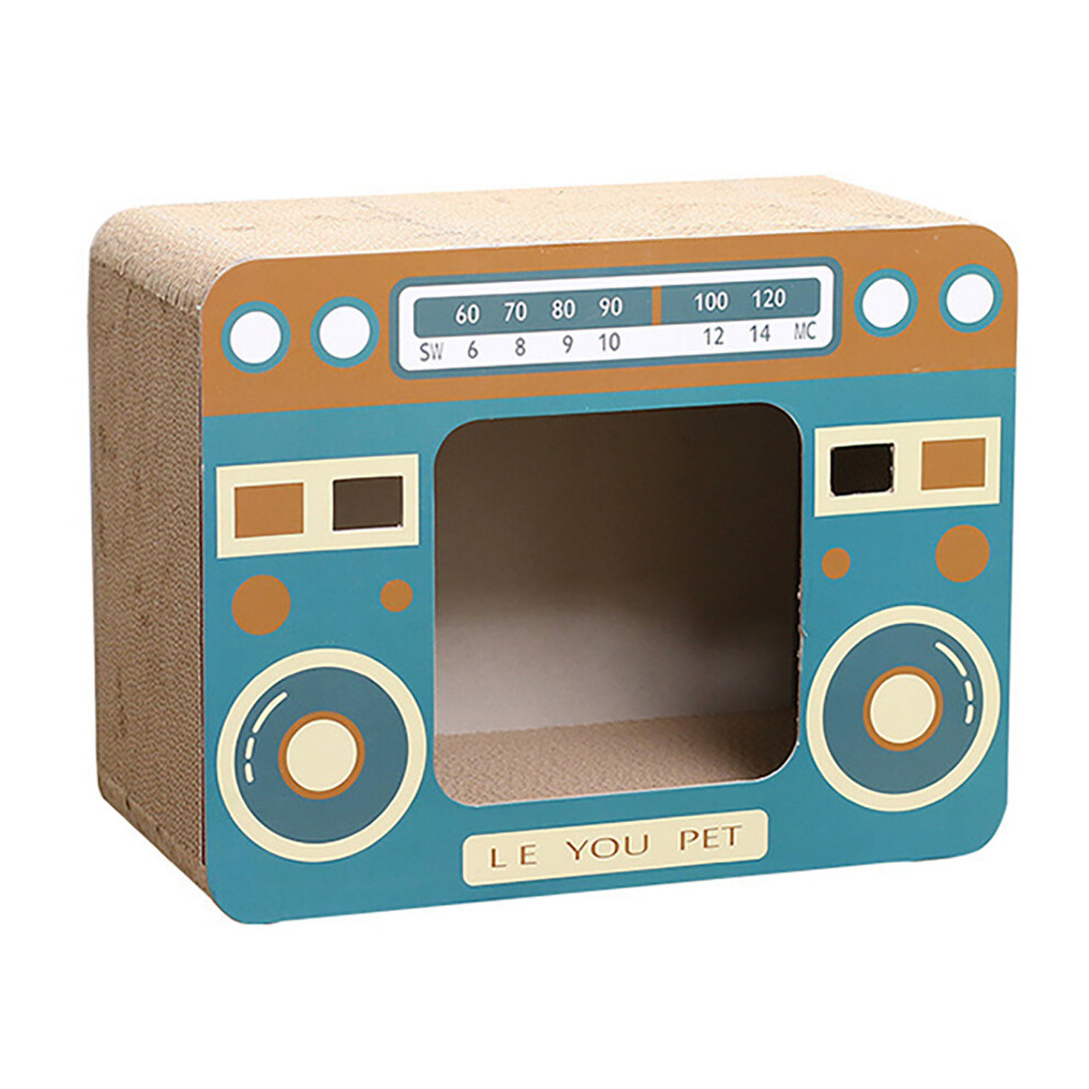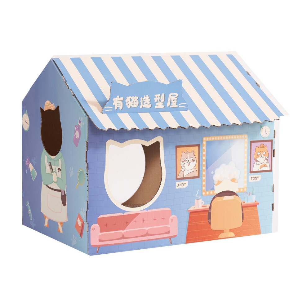 (Blue) Stylish Corrugated Cardboard Cat House with Scratching Pad for