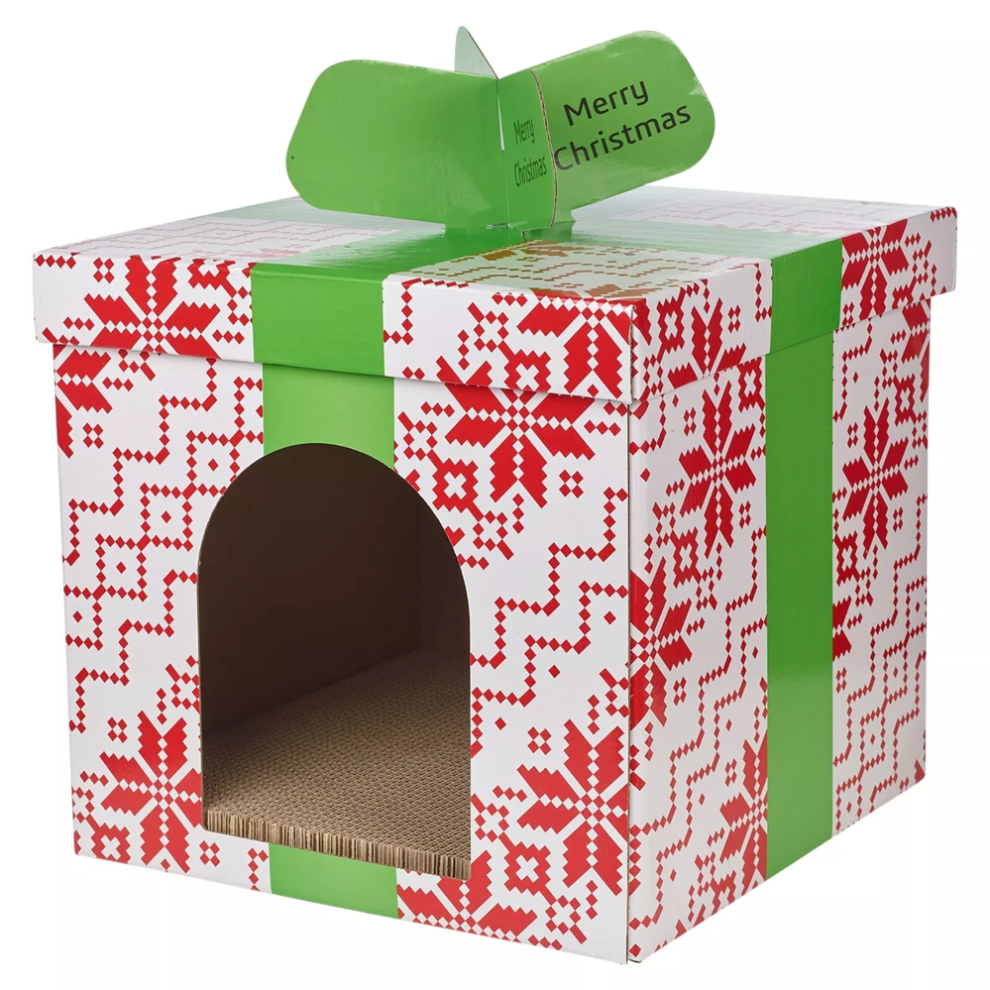 Christmas Cardboard Cat House for Holiday Home Decoration 45.5 X 37 X 37 Centimetres Red White and Green