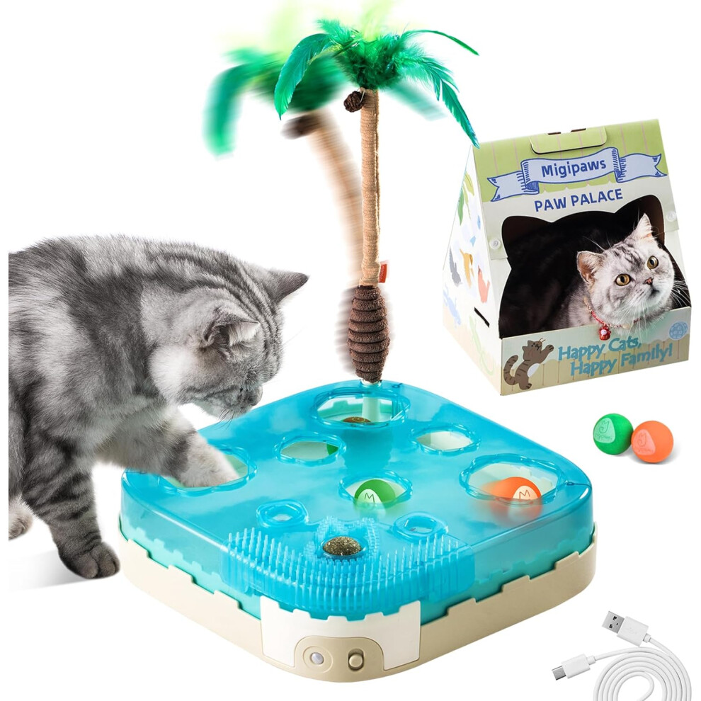 Cat Toy,7-in-1 Automatic Interactive Kitten Toys Pack,Rolling Ball,Cat Feather Wand,Catnip Ball,Cat Self ,Cardboard Cat House,Rechargeable,Paw Palace
