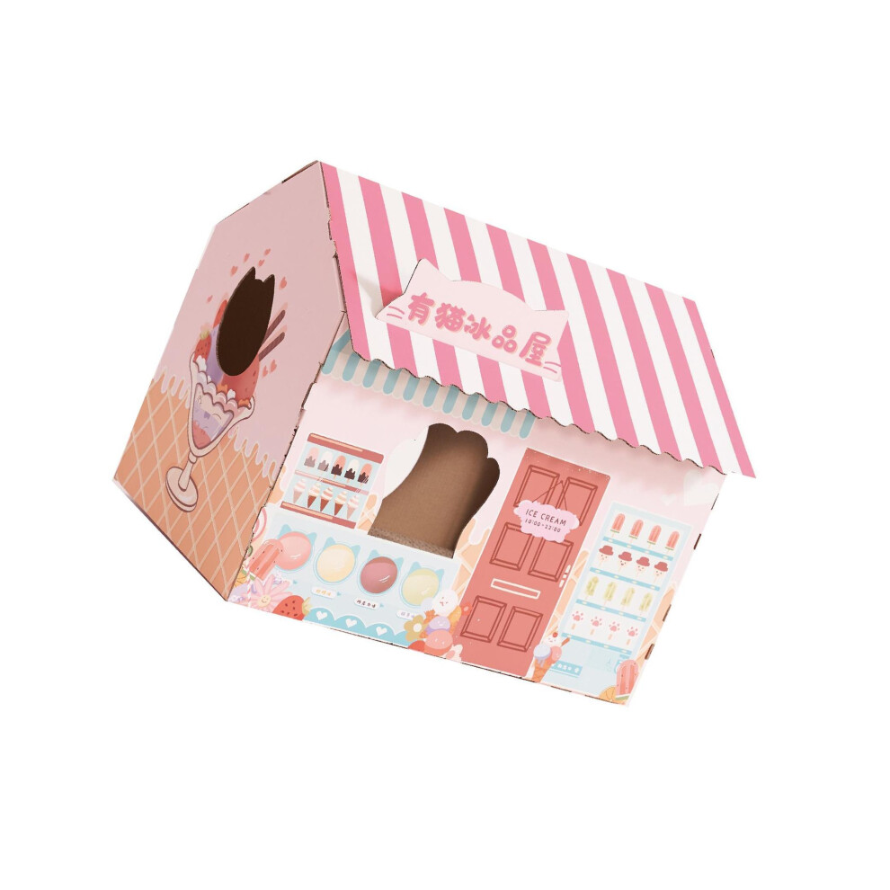 Cardboard Cat House Cute Portable Large Space Claw Grinding Relaxing High Density Cat Scratcher House for Indoor 008 2
