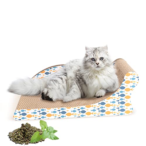 Nobleza Cat Scratcher, Reversible Use Cats Scratching Board, Curved Cats Scratch Lounge Bed Sofa with Catnip, High Density Corrugated Scratchers Cardboard Durable Cat Scratchers Pad, Size 45*28*16 cm