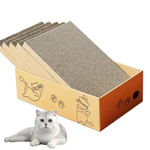 Cat Scratching Board with Box, 5 Layers Design Cat Scratching Pad, Reversible Cat Scratcher Cardboard Lounge Bed, Corrugated Cardboard Scratcher for Indoor Kitty