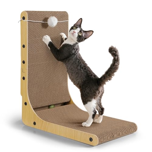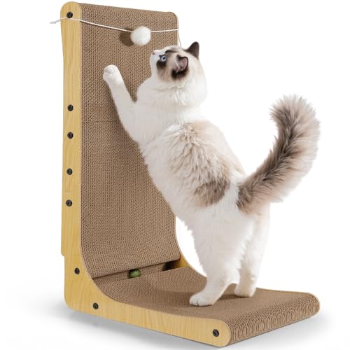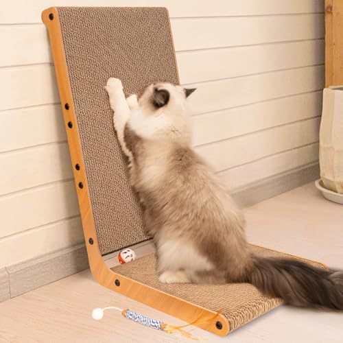 EHEYCIGA L Shape Vertical Cat Scratcher, 68cm High Scratching Board for Indoor Cats, Protecting Furniture Scratch Pad, Cardboard Cat Scratching with Ball Toy