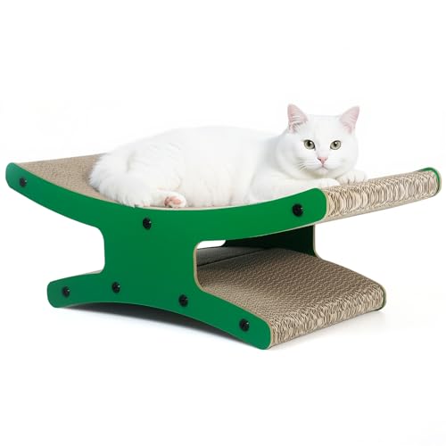 Cat Scratcher Bed, Dual-Sided Cardboard Scratchers for Indoor Cats - Scratching Board & Sturdy Cat Lounger Hammock Chair Furniture (Chirstmas Green)