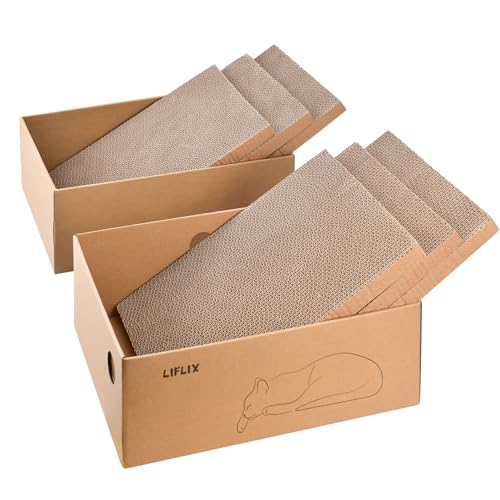 LIFLIX Cardboard Cat Scratcher with 2 Boxes, 6PCS Reversible Scratch Pads in Large Scratching Box, 17.1" x13.2 x6.1