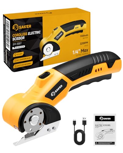 Saker Cordless Electric Scissors,Rechargeable Fabric Scissor with LED Light,Power Rotary Cutter for Leather Carpet Plastic Cutting,Sewing,Crafting,Cardboard Box Cutter with 1 Blade