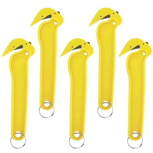 Yellow Hook Knife, Box Cutter, Safety Knife, Cutter, Work Knife, Box Cutter Safety Knife, Cardboard Cutter, Utility Knives, Warehouse, Box Opener, Box Knife, (Set of 5)
