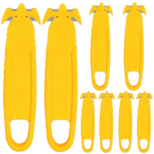 XUELIYUN 8 Pcs Safety Cutter Tool Yellow Hook Knife Film Yellow Box Cutter Strapping Opener Cardboard Carton and Package Opener Box Safety Knife Warehouse (No Exposed Blade)
