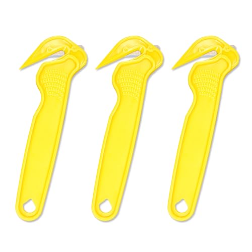 3 Pcs Safety Cutter Tool Yellow Hook Knife Film Yellow Box Cutter Strapping Opener Cardboard Carton and Package Opener Box Safety Knife Warehouse (No Exposed Blade)