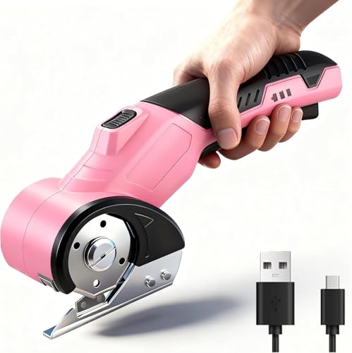 Cordless Cardboard Cutter, High-Speed Electric Scissors, Low Noise & LED Light USB Charger Power Electric Scissors for Cutting Fabric, Leather, Carpet, Sewing, Crafting & DIY Projects (Pink)