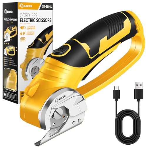 Saker Cordless Electric Scissors,4V Rechargeable Cardboard Box Cutter Fabric Scissor with Safety Lock & LED Light,Power Rotary Cutter for Leather Carpet Plastic Cutting