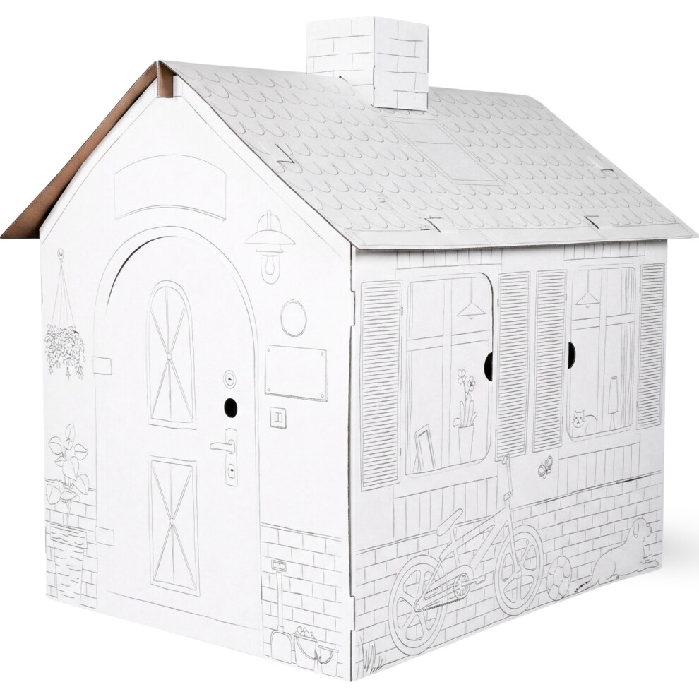 Cardboard Playhouse for Kids to Colour – XL Size, 52.36 Inches (133 cm) Tall, DIY 3D Creative Playhouse, Children's Painting House for Creativity, Colouring & Play Activities, Indoor Use