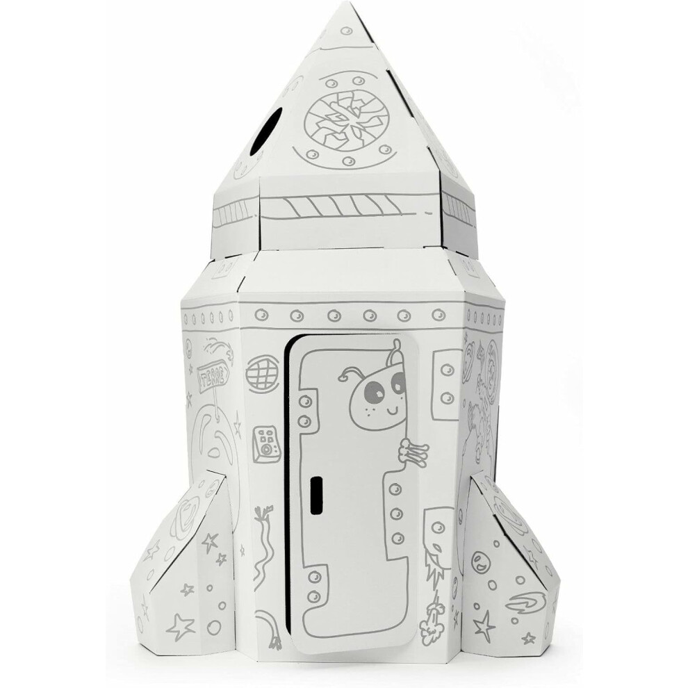 Cardboard Spaceship Rocket Playhouse for Kids to Colour DIY Creative Playhouses