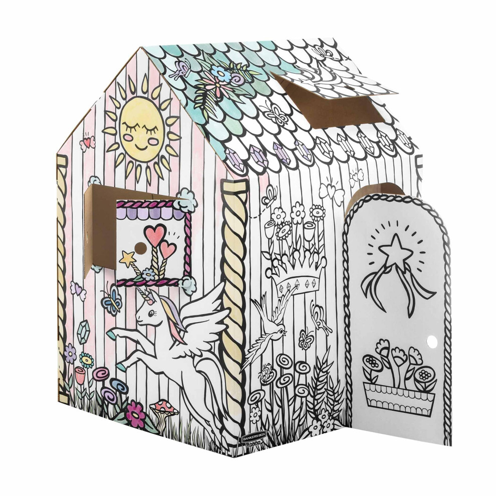 BANKERS BOX Unicorn Cardboard Playhouse for Kids XXL (81.3 x 96.5 x 121.3cm) ? Colour-In Cardboard Den, Doll House & Unicorn Toy ? FSC Certified &