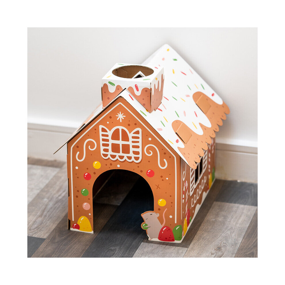 Cardboard Cat Den Playhouse - Christmas Gingerbread House