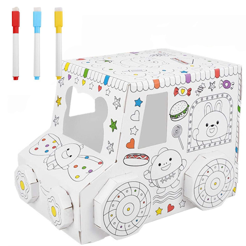 Educational DIY 3D Cardboard Playhouse with Reusable Paint for Kids
