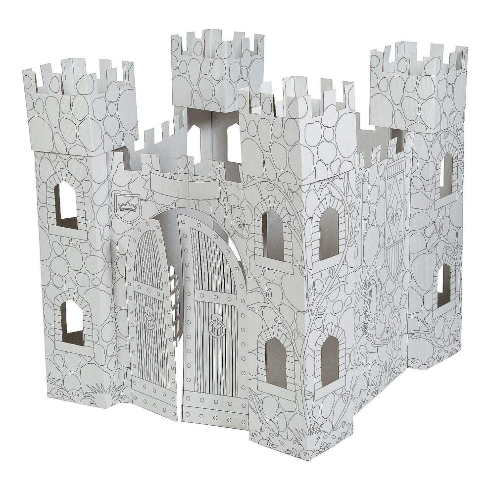 Cardboard Castle Playhouse - Folds for Easy Storage - Color Your Own Toy for Kids Creativity and Play