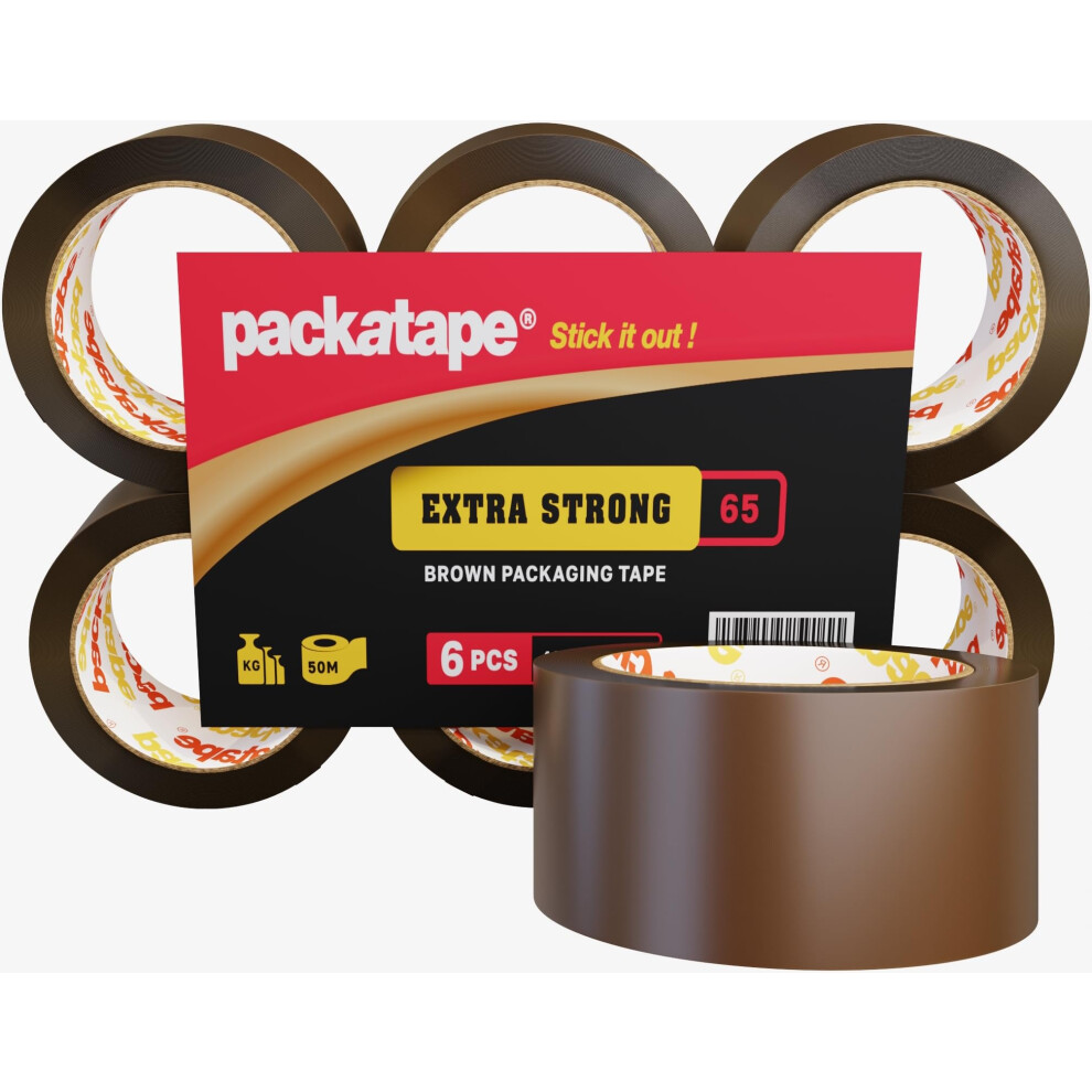 Packatape Extra Strong Parcel Tape Packing Tape 6 Rolls Brown Packaging Tape 48mm x 50m Ideal for Parcel Packaging, Storage Cardboard Boxes