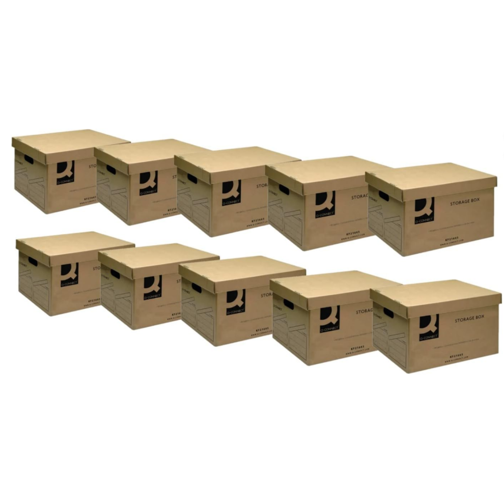 Brown Cardboard Storage Boxes - Pack of 10 - Q-Connect Archive Filing Boxes for Documents