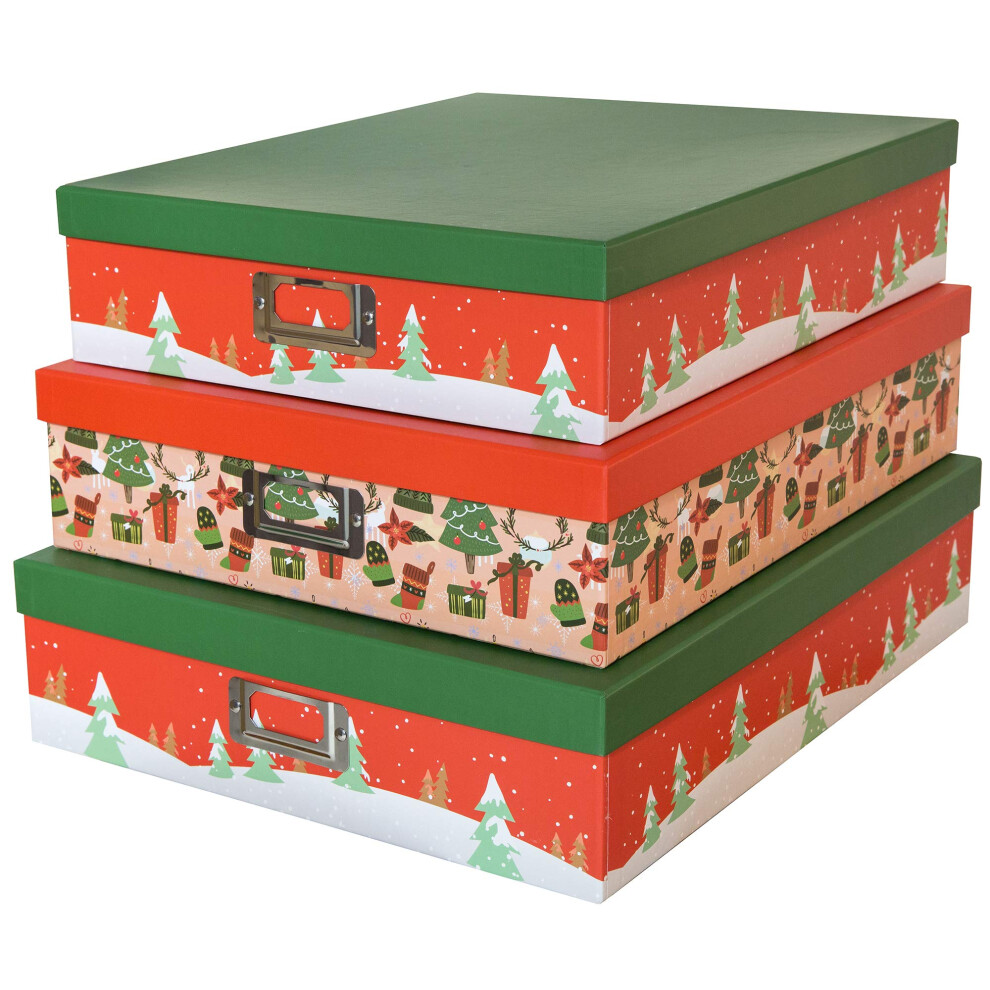 Soul & Lane Christmas Decorative Cardboard Storage Boxes (Set of 3): Nesting Photo Storage Boxes with Lids Small Decorative Gift Boxes Red and Green