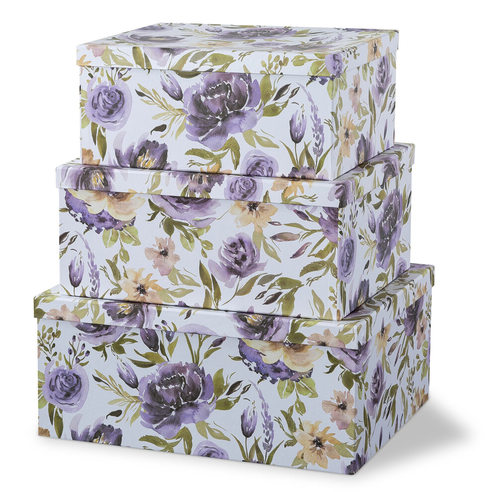 Soul & Lane Decorative Cardboard Storage Boxes With Lids For Home Décor - Purple Passion - Set Of 3: Large Nesting Gift Boxes, Pretty Floral Paperboa