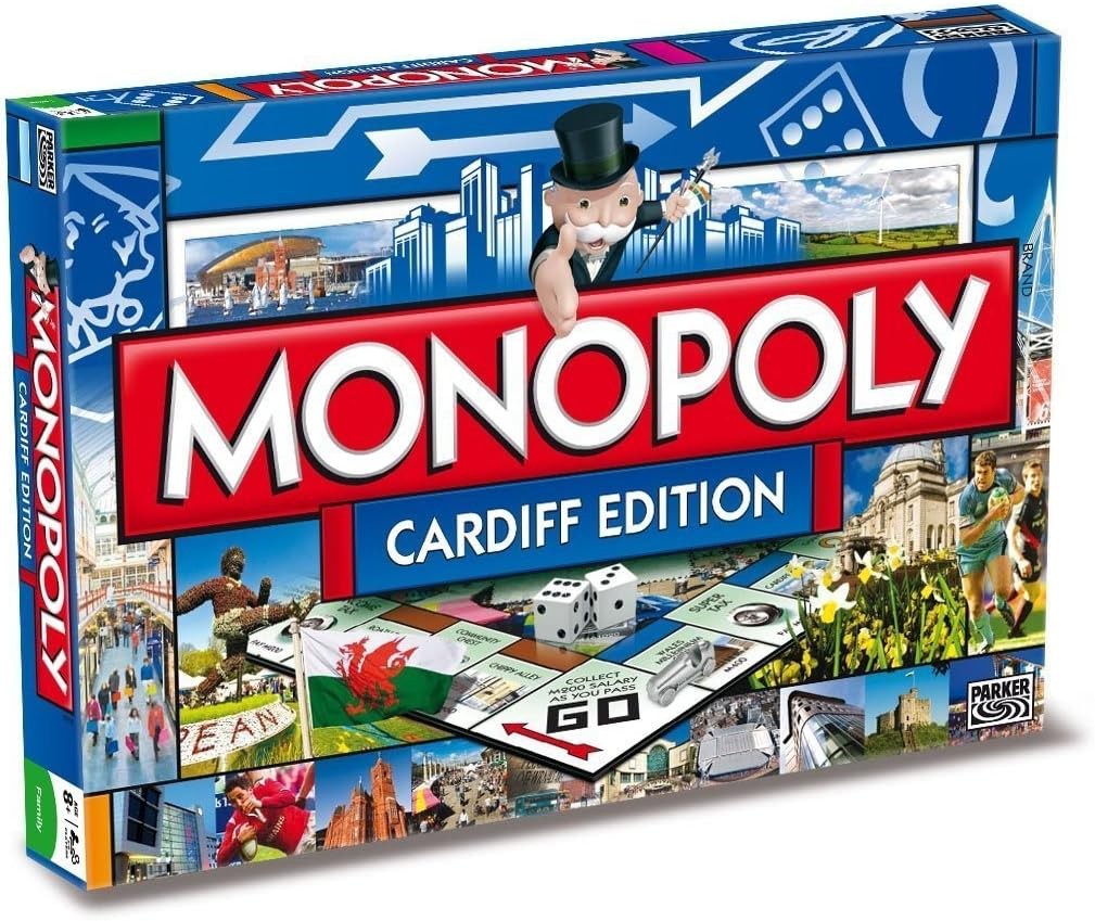 Winning Moves Cardiff Monopoly Board Game, Advance to The Cardiff International Airport, Millenium Stadium or Wales Millenium Centre and trade your way to success, makes a great gift for ages 8 plus