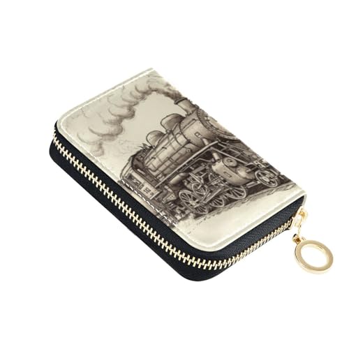 TZTTZT Vintage Steam Train Print Credit Card Holder for Women, Card Case Wallet, Leather Credit Cards Holder Wallet