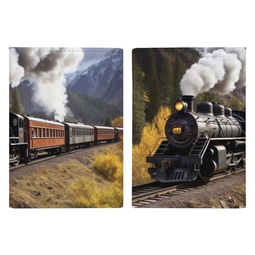 Steam Locomotive Train Printed Passport Cover Case Passport Holder For Travel Passport Cards Protector Travel Covers Wallet Case RFID Blocking Leather Card Case for Women Men, Steam Locomotive Train,