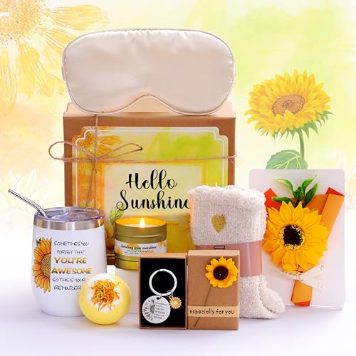 Sunflower Birthday Gifts for Women,Get Well Soon Gift Baskets Her Self Care Package Relaxation Spa Bath Gift Set Box Christmas Pamper Hamper thank you retirement teachers Friends Sisters Wife Mum