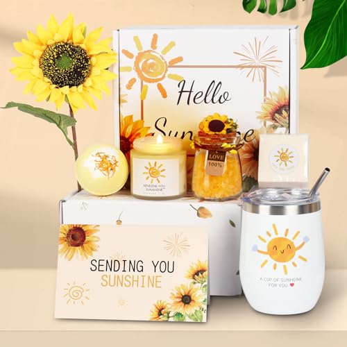 Sending Sunshine Birthday Gifts for Women, Valentines Gifts for Her Cheer Up Pamper Gifts Thank You & Get Well Soon Baskets Self Care Package Relaxation Gifts