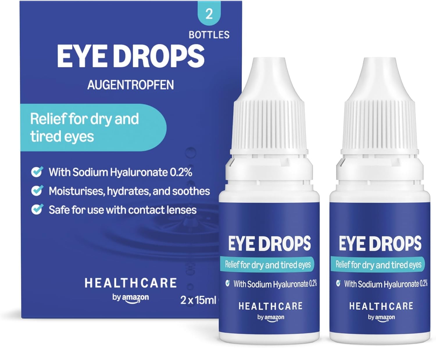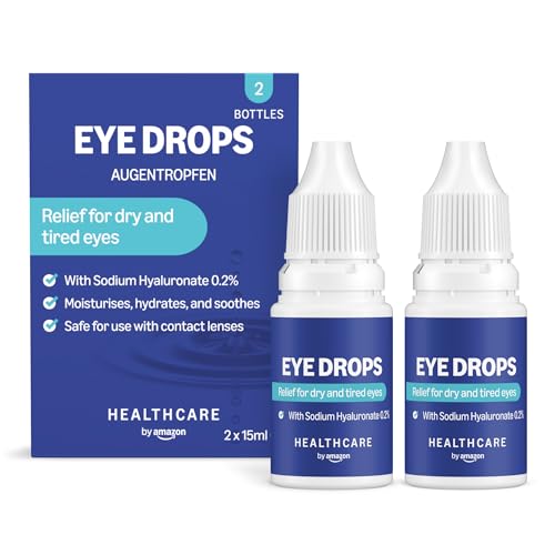 Healthcare by Amazon Eye Drops with Sodium Hyaluronate 0.2%, 15 ml, Pack of 2 (Previously a Amazon Basic Care brand, same product)