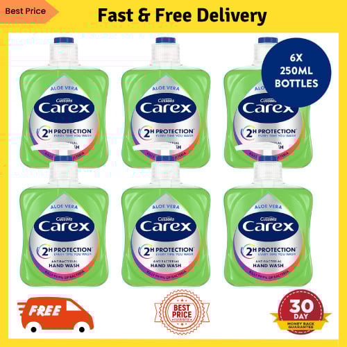 6 x CAREX ALOE VERA LIQUID HAND WASH REFILL FLIP TOP BOTTLE 250ml