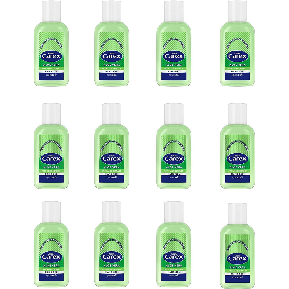CAREX Aloe Vera Anti Bacterial Hand Sanitiser Gel Pack of 12, with Anti Viral Action Hand Gel and 70 Percent Alcohol that Cleans, Cares and Protects,