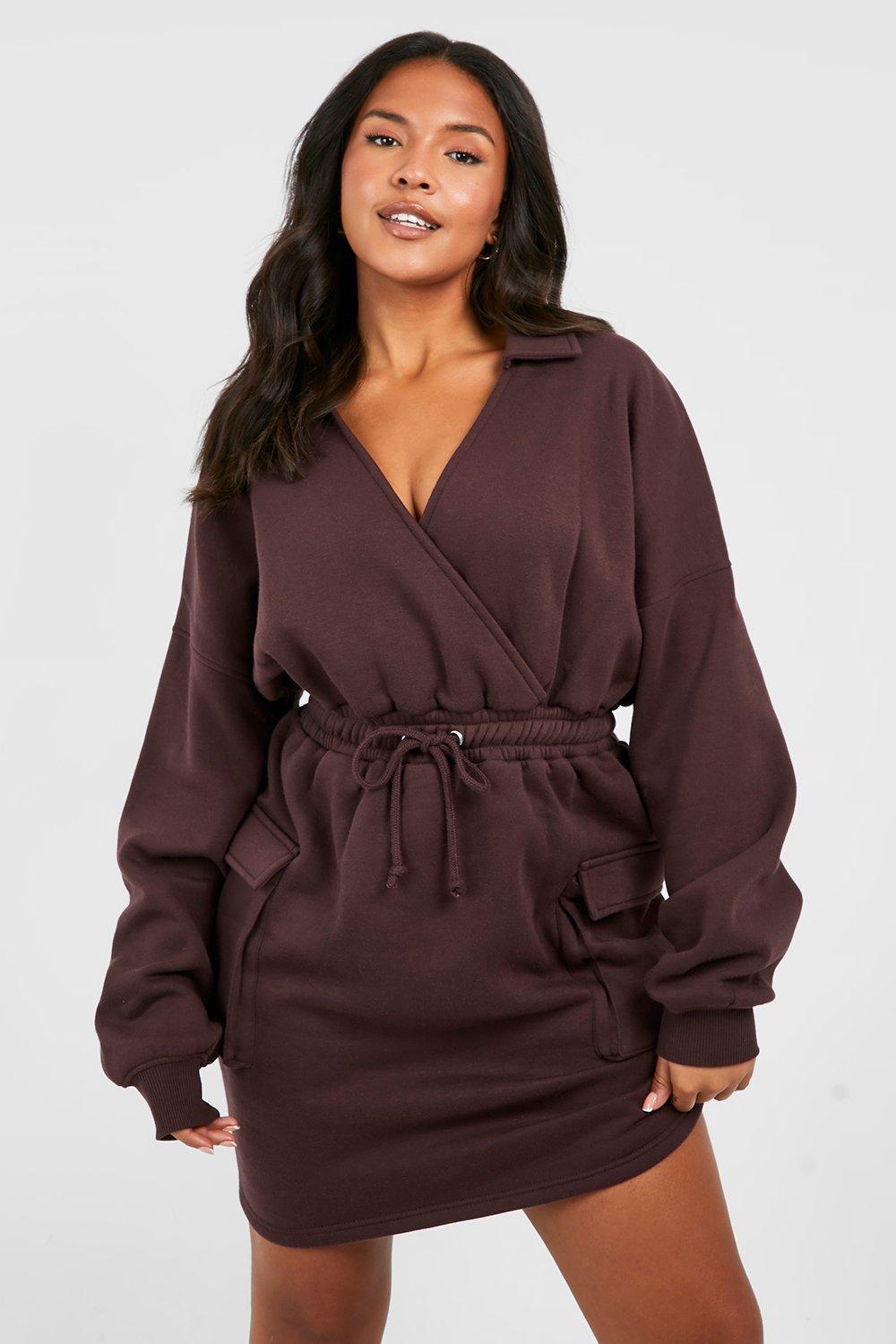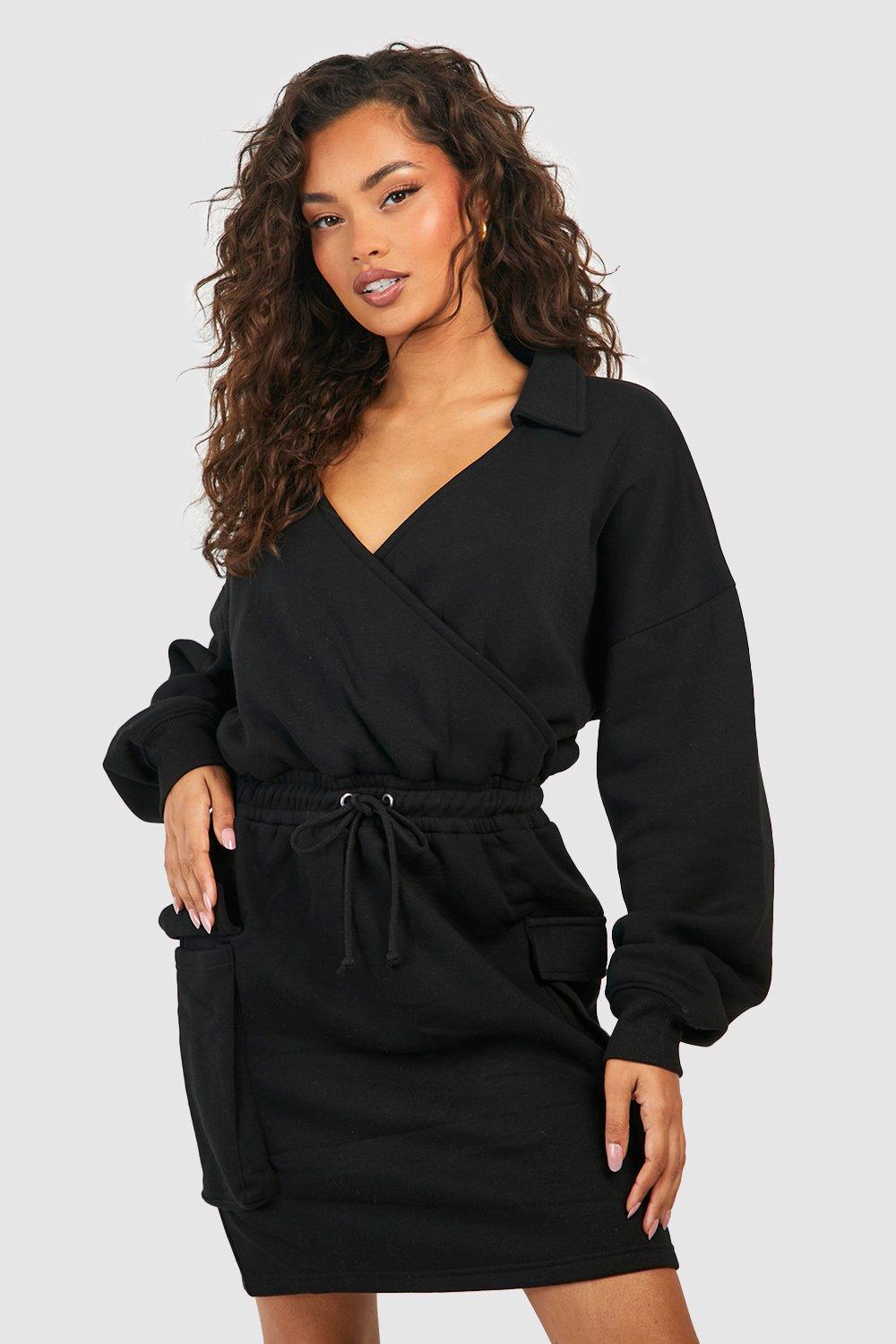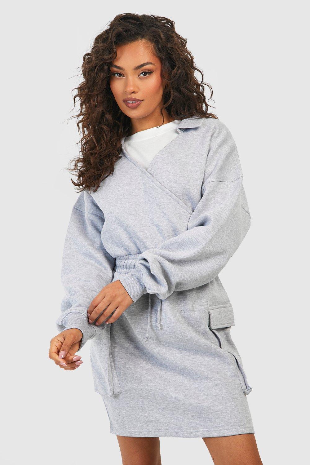 Plus Wrap Tie Waist Cargo Pocket Sweat Dress