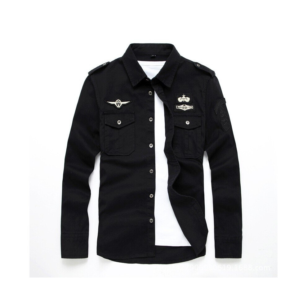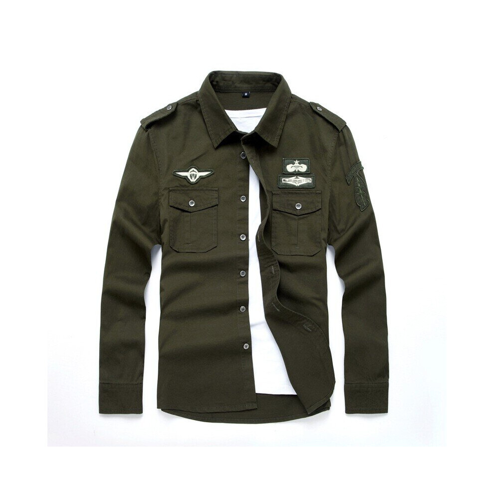 100% Cotton Military Tactical Long Sleeve Shirt Mens Embroidery Patchwork Casual Lapel Cargo Dress Shirts Male Tops