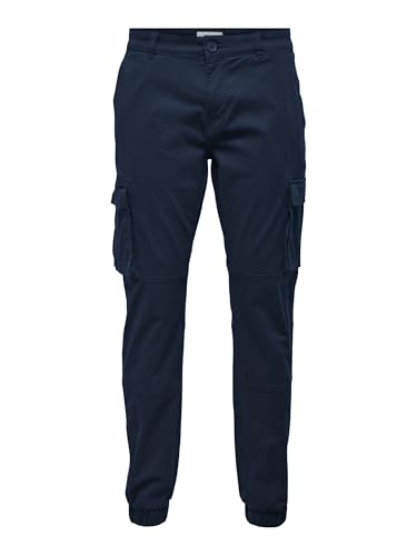 ONLY & SONS Male ONSCAM Tapered Cargo Trousers, Dress Blues 1, 36 W/34 L