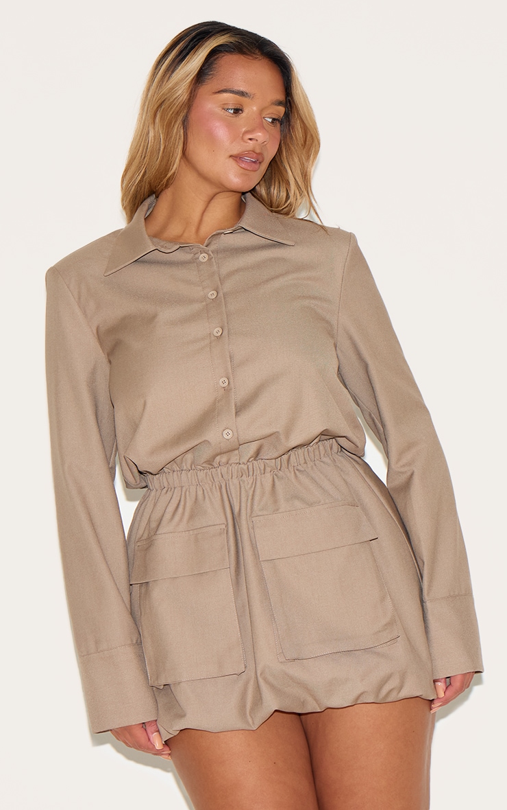 Shape Mocha Button Front Puffball Cargo Shirt Dress