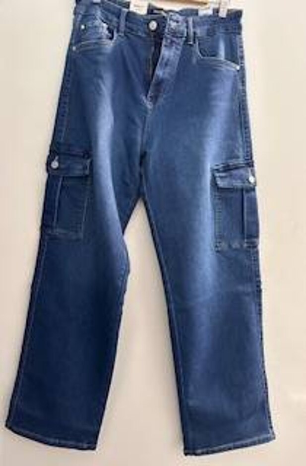 Petite Denim Light Wash Pocket Detail Cargo Jeans
