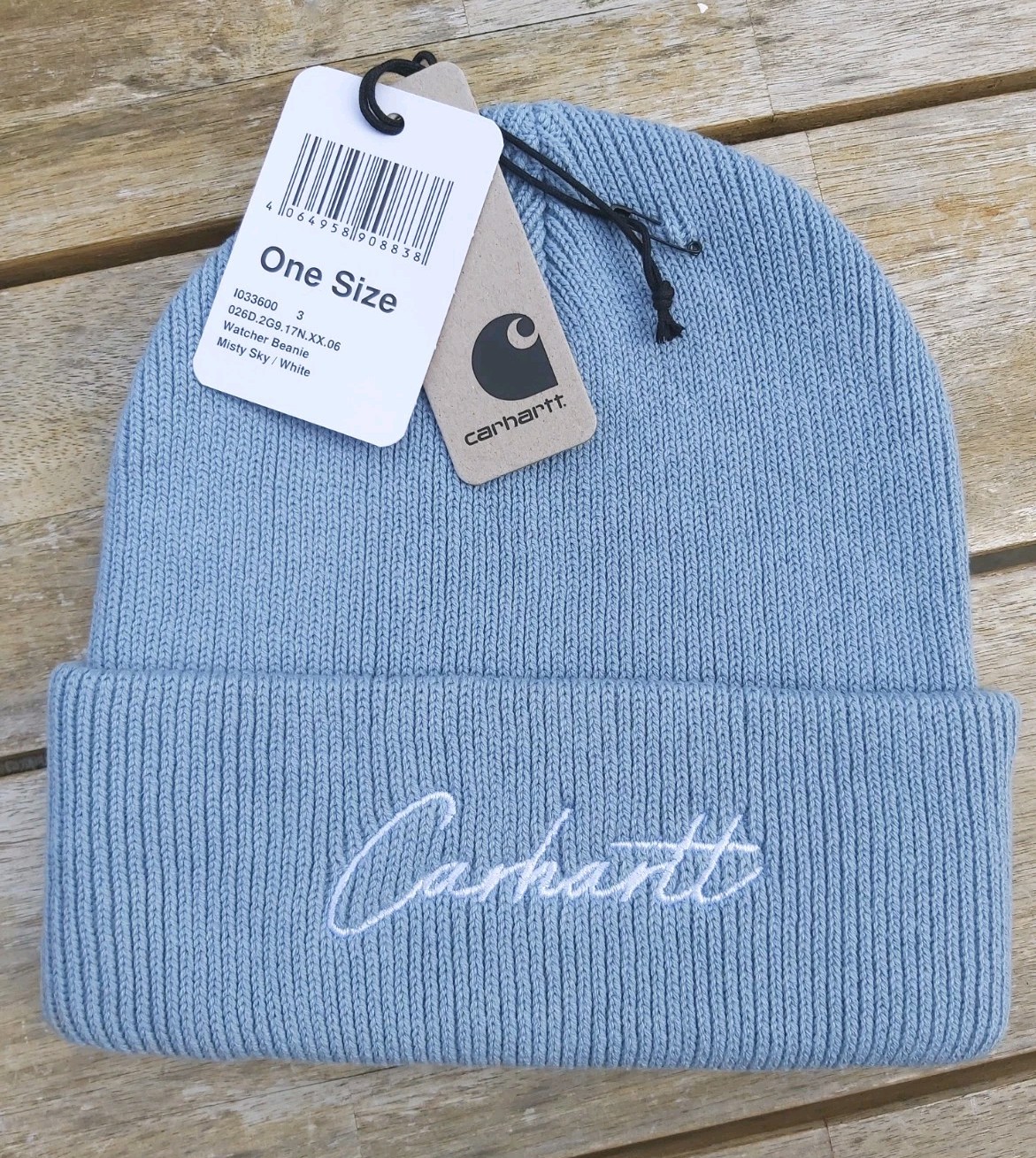 Genuine CARHARTT Misty Sky Blue *Embroidered Logo* Cuff BEANIE Hat I033600 3