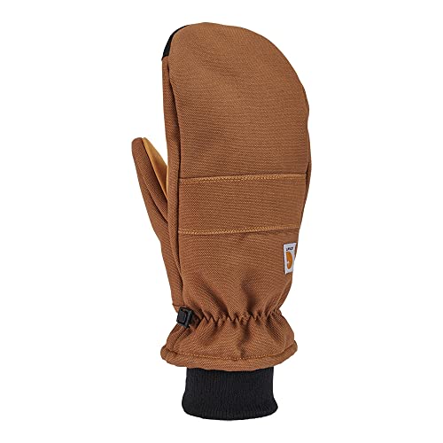 Carhartt Men's Insulated Duck Synthetic Leather Knit Cuff Mitt Cold Weather Gloves, Brown, Large
