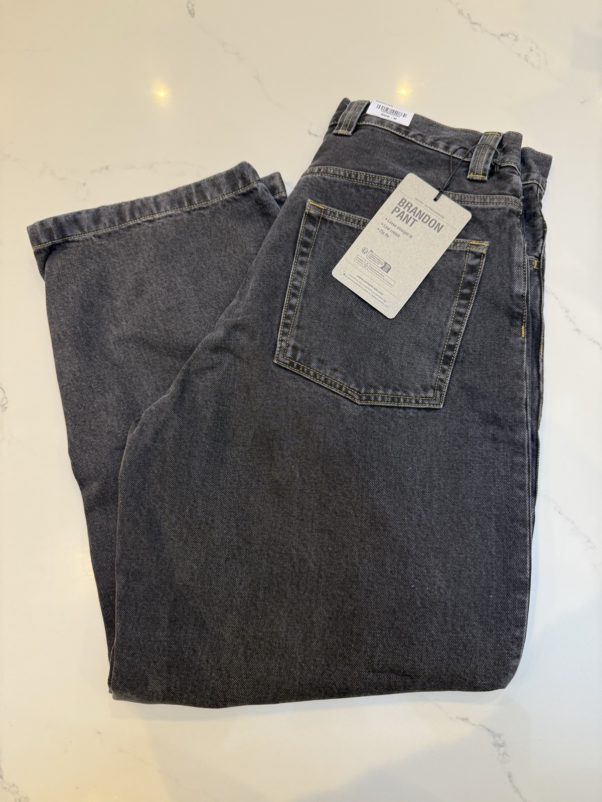 Carhartt WIP Brandon Loose Straight Fit Jeans Black Stone Wash - Large RRP £100
