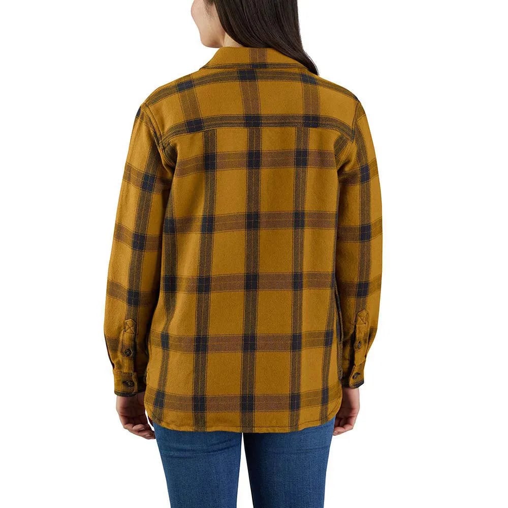 Carhartt Women's Loose Fit Heavyweight Twill Long-Sleeve Plaid Shirt Work Utility Button Down Shirt, Carhartt Brown,