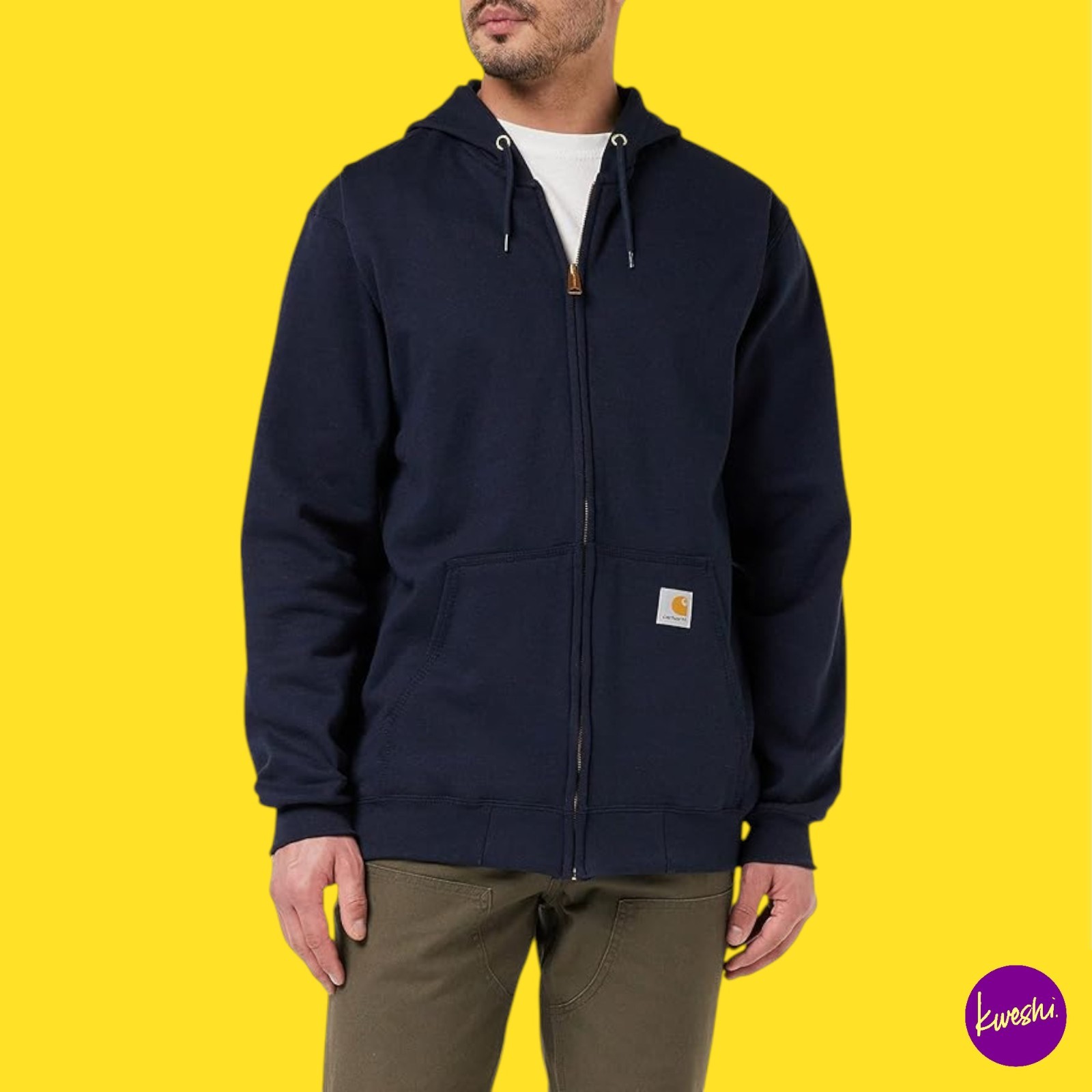 CARHARTT Men's Loose Fit Full-Zip Hoodie, Midweight Fleece, Navy, UK XXL | EU 58