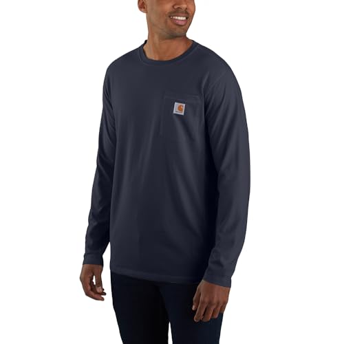Carhartt Men's T-shirt Force Relaxed Fit Midweight Long Sleeve Pocket T Shirt, Navy, XXL UK