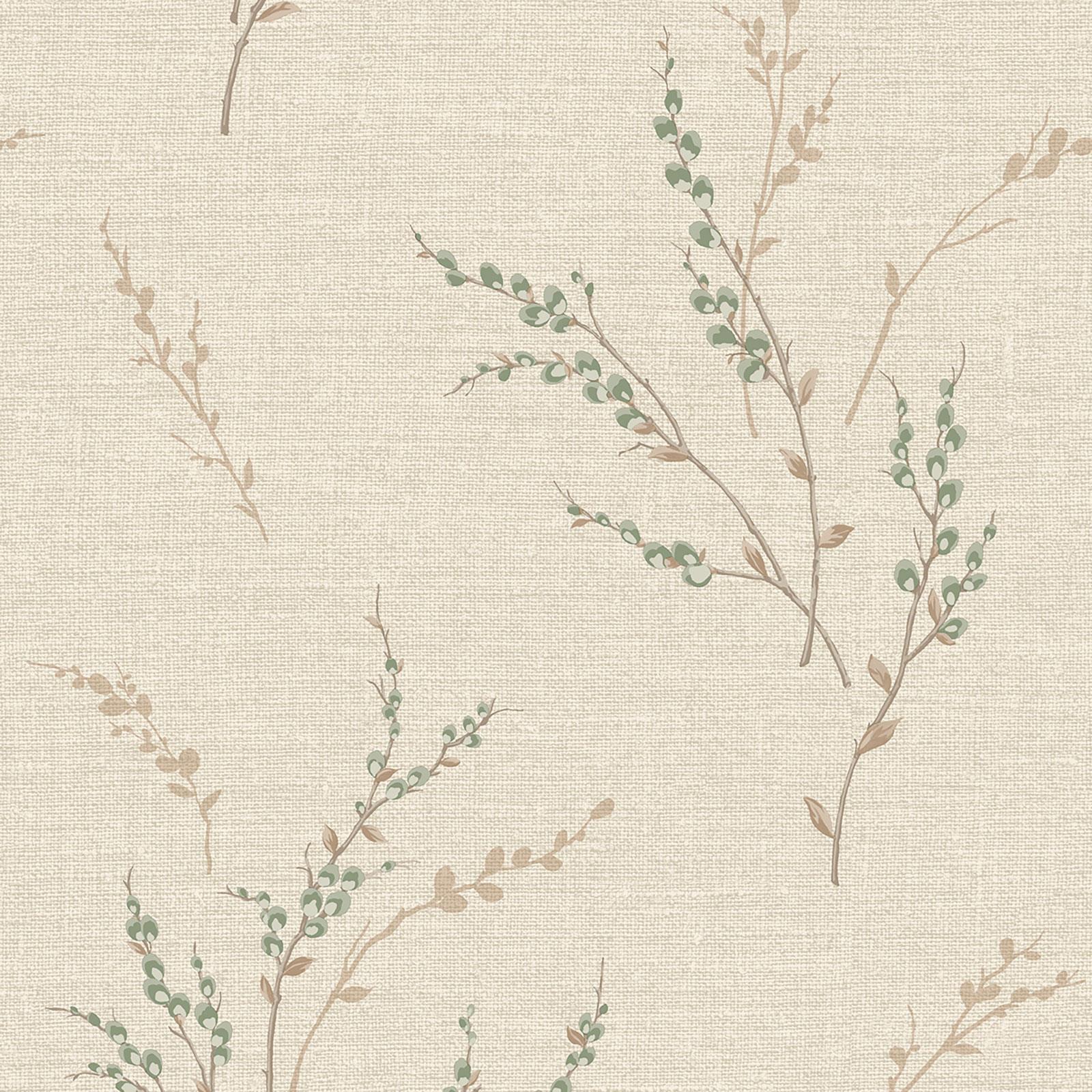 Belgravia Carmella Floral Wallpaper Textured Vinyl Metallic Hessian Cream 7150
